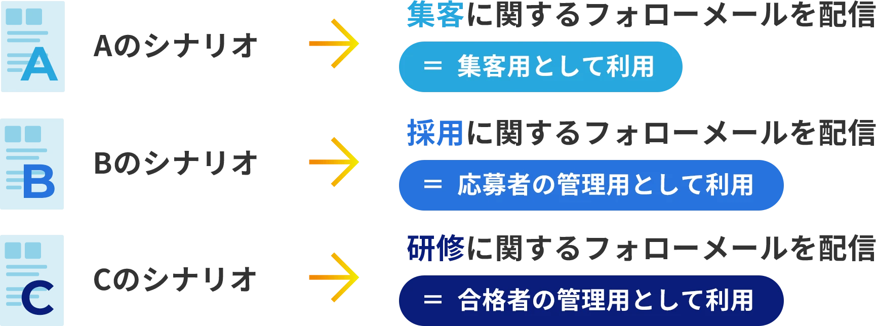 各シナリオごとに、配信する内容や目的を分けて設計できる