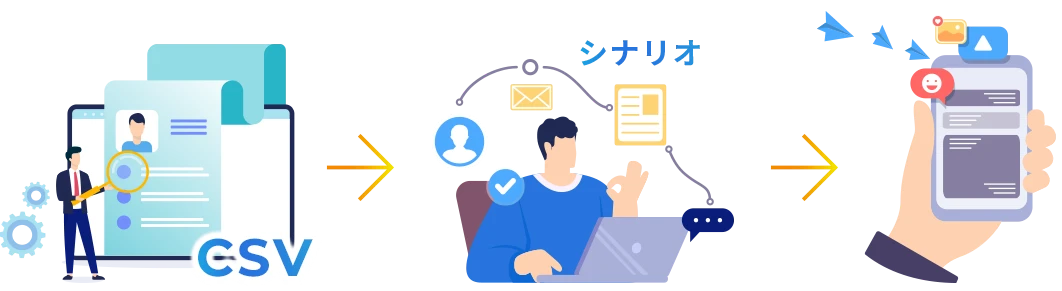 各シナリオごとに、配信する内容や目的を分けて設計できる